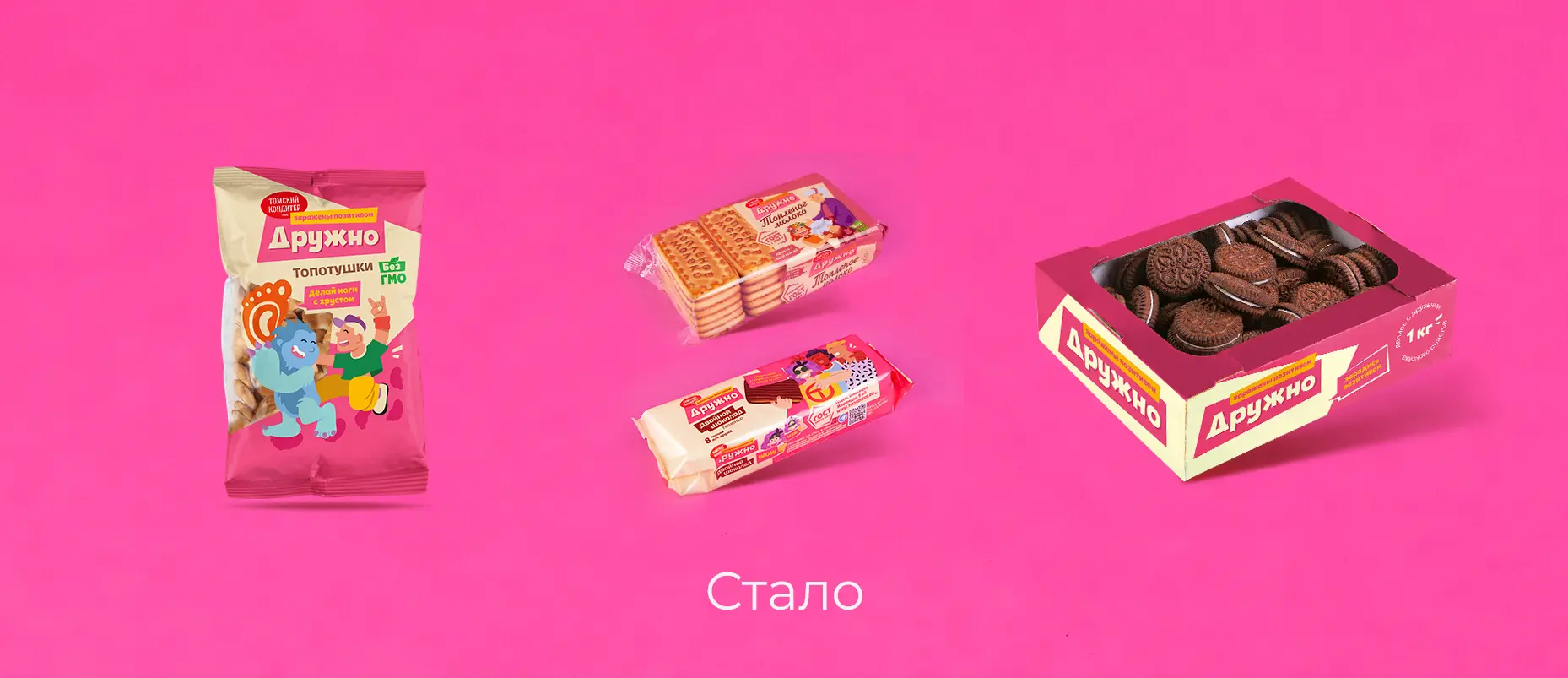 Команда A.STUDIO совместно с «Томским кондитером» разработали маркетинговую стратегию. Одним из шагов этой стратегии стало создание бренда «Дружно».