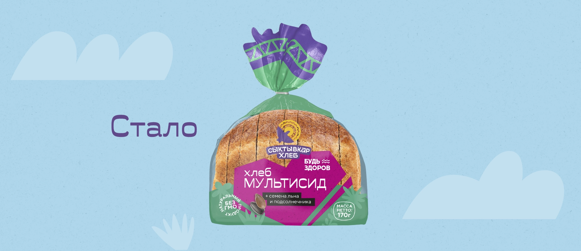 Новая упаковка «Сыктывкархлеба» объединила всю продукцию хлебозавода, выделила ее на полке. В ее дизайне большая часть пакета прозрачная, чтобы покупатель мог сразу видеть свежий хлеб. Здесь же создается дополнительная коммуникация через копирайтинг в стилизации фольклора. Доброжелательные фразы обращают на себя внимание, что способствует быстрому запоминанию.